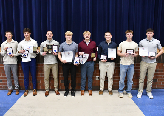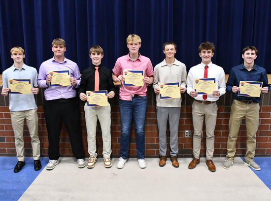 The Crestview football program recently concluded its season with head football coach Cole Harting and his coaching staff recognizing the team’s accomplishments throughout the season. Football Scholar Athletes (pictured above): Logan Matson, Evan Myers, Tate Lichtensteiger, Denver McDougall, Huxley Grose, Evin Brincefield, Noah Mosier. Not pictured: Kaden Gause and Will Sheets. Football Special Awards: Huxley Grose (Captain’s Award), Liam Putman (Captain’s Award, NWC 1st Team Defense and 2nd Team Offense, NW District 2nd Team Offense and Defense), Braxton Leeth (Captain’s Award, NWC Player of the Year and 1st Team Offense, NW District Player of the Year and 1st Team Offense), Hayden Perrott (Captain’s Award, NWC Honorable Mention Offense and 2nd Team Defense, NW District 2nd Team Defense and Honorable Mention Offense), Kale Lichtensteiger (Knight Pride Award, NWC 1st Team Offense, NW District 2nd Team Offense), Jace Wehner (Knight Pride Award, NWC Honorable Mention Offense, NW District Honorable Mention Offense), Luke Eggleston (Knight Pride Award), Braxtyn Couts (Knight Pride Award, NWC Honorable Mention Defense, NW District Honorable Mention Defense). Not pictured: Bentlee Feasel (Knight Pride Award), Logan Matson (Knight Pride Award), Evan Myers (Knight Pride Award), and Will Sheets (NWC 2nd Team Offense and Defense, NW District 2nd Team Offense and Honorable Mention Defense). Photos submitted