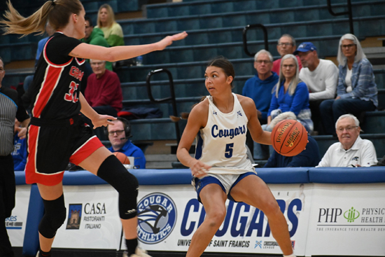 University of St. Francis guard Cali Gregory (5) put on quite a show on Saturday. The 2024 Crestview High School graduate scored 26 points in the first quarter alone in a 119-46 win over Grace College. In 26 minutes of action, she connected on 10-of-15 shots, including 7-of-9 three point attempts, and finished with 29 points. St. Francis, ranked No. 7 in the latest NAIA poll, is now 8-0 on the season. USF photo