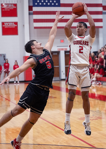 The Cougars (6-2) found themselves down 18-13 after one quarter, with Griffin McCracken supplying a pair of treys in the opening period and Columbus Grove’s Trevon Baxter scoring 10 of his points in the quarter.  Early in the second quarter, Columbus Grove (2-2) went up 23-15 and had the ball, but a hook shot by Crummey, a trey by Kelly and another bucket by Crummey sparked an 11-0 run. By halftime, Van Wert led 28-27.