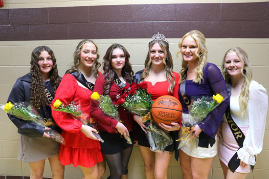 Olivia Clifford was crowned as the 2026 Parkway winter homecoming queen during the annual coronation ceremony held Saturday night. She was crowned by last year’s winter homecoming queen, Alayna Reigle. Picture left to right are members of the homecoming court: freshman Lydia Cottman, sophomore Lydia Eichler, senior Payton Frese, Queen Olivia, senior Emmery Temple, and junior Lexie Sites. The homecoming dance was held following the varsity boys basketball game vs. Delphos Jefferson. Photo submitted