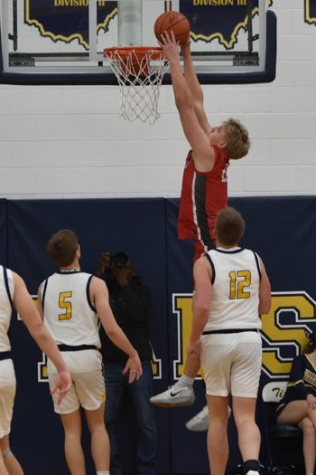 Zach Crummey picked up his third foul early in the third quarter, which sent him to the bench for the remainder of the period, but Keaten Welch stepped up with six points, including a trey to beat the buzzer and gave the Cougars a 42-32 lead. Griffin McCracken added five points in the quarter and Bragg added a pair of baskets.