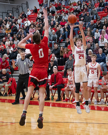 Shawnee led 15-10 at the end of the first quarter and 18-11 early the second quarter, but Van Wert (15-5, 7-1 WBL) responded with back-to-back treys by Griffin McCracken, then a layup by Cohen Bragg that gave the Cougars a 19-18 lead. From there, the two teams went back and fourth and Van Wert led 26-25 at halftime.