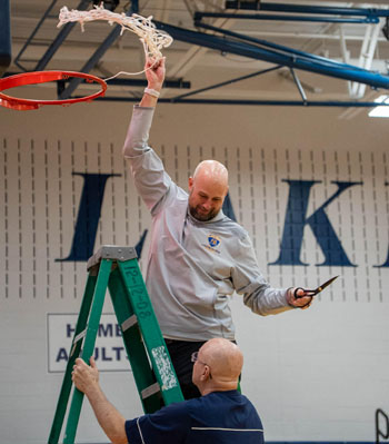 Brett Hammons swings the net after his Lancers moved on to the Division VI regional semifinals. Lincolnview will face rival Crestview Thursday night, one night after Van Wert plays in the Division IV regional semifinals. Hannah Young photo