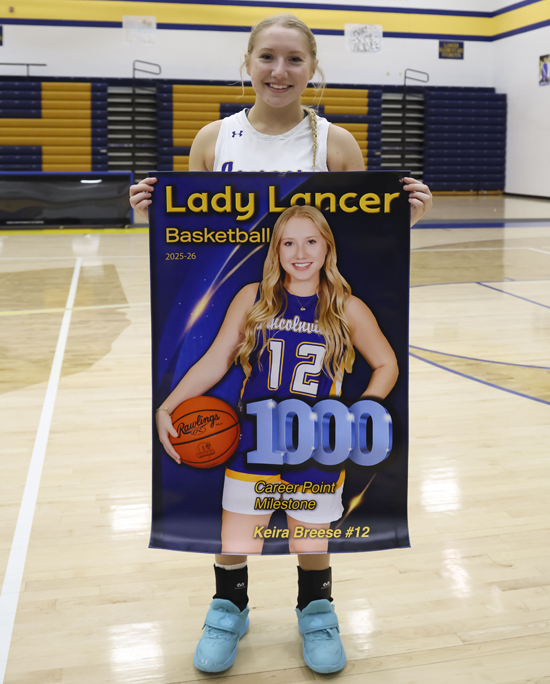 It’s a magical milestone and Lincolnview’s Keira Breese hit it Thursday night. Breese scored her 1,000th career point on a fourth quarter trey at home against Allen East. Breese finished the night with 10 points, but the Lancers fell to the Mustangs 37-26. Lincolnview (7-11, 1-3 NWC) will travel to Fort Jennings on Monday. Wyatt Richardson/VW independent