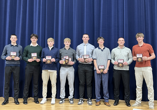 After a 19-7 (8-1 WBL) season that included sectional and district championships and a trip to the Division IV regional semifinals, the Van Wert boys basketball program held its annual awards program Tuesday night. Show above, left to right, are: Kaiven Welch: “Pride Award”; Keaten Welch: Third Team All-WBL; Cohen Bragg: Second Team All-WBL, Honorable Mention All-Northwest District; Zach Crummey: “Chairman of The Boards”, Second Team WBL, Honorable Mention All-Northwest District; Xavier Kelly: “Cougar Award”, First Team All -WBL, Second Team All-Northwest District, Second Team District 8, Honorable Mention All-Ohio; Griffin McCracken: “Claw Award”, Third Team All-WBL, and Caden Collins: “Grit Award”, Honorable Mention All-WBL. Photos submitted