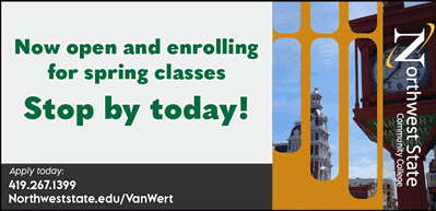 While the time changed, the meeting will be held in the First Federal Lecture Hall in the Niswonger Performing Arts Center.