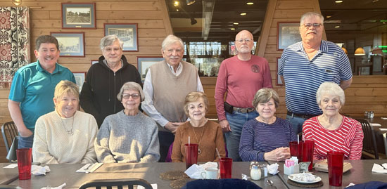 Central Insurance retirees and guests met on February 25, for their monthly get together at Pizza Hut in Van Wert. The group enjoyed a relaxed lunch filled with conversation, life updates and a shared meal from the buffet and favorite menu selections. Those in attendance were (below, front row, left to right): Paula Giessler Scott, Ruth Ricker, Dorothy Helmke, Sue Karst, and Linda Holden. Back row (left to right): Dewaine Johnson, Phil Steinen, Chuck White, Doug Watson and Loren Shindeldecker.